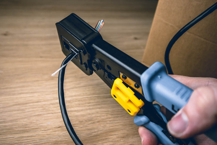 برای اتصال سوکت RJ45 به کابل اترنت، به یک ابزار چین دار مدولار نیاز دارید. می توانید از این ابزار برای جدا کردن پوشش کابل و بستن کانکتور RJ45 روی اتصال اترنت استفاده کنید.